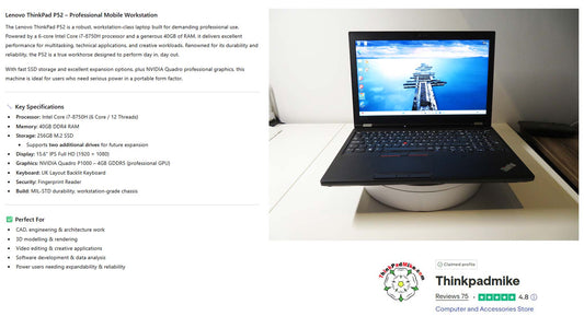 Lenovo ThinkPad P14s AMD Ryzen 7 Pro 8 Core 32GB RAM 512GB SSD IPS Screen (1298)