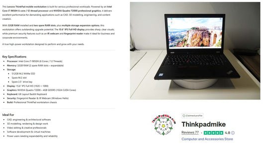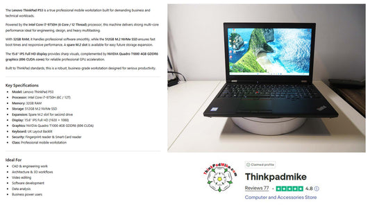 Lenovo ThinkPad P53 i7 *HEX CORE* 9850H 2.6Ghz 32GB RAM 512GB SSD IPS B\L KB NVIDIA T2000 (1287)