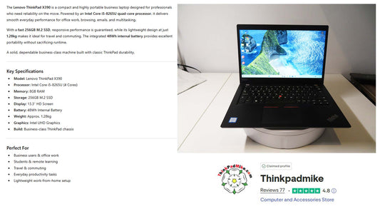 Lenovo ThinkPad x390 i5 1.6Ghz 8265U 8GB RAM 256GB SSD 13.3" HD Screen (937)