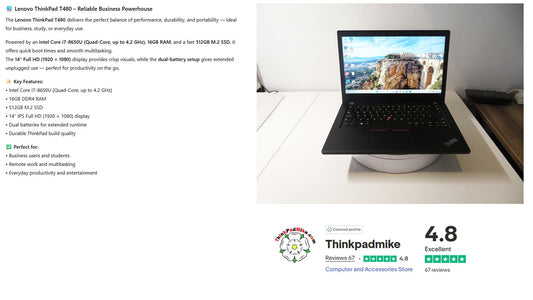 Lenovo ThinkPad T480 i7 8650U 16GB RAM 512GB SSD FHD SCREEN (1218)