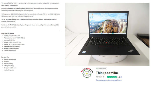 Lenovo ThinkPad T490 i7 1.9Ghz 8665U 32GB RAM 256GB SSD IPS Screen (1304)
