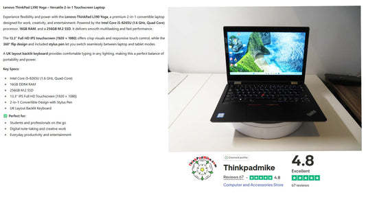 Lenovo ThinkPad L390 Yoga i5 1.6Ghz 8265U 16GB RAM 256GB SSD IPS TOUCH Screen Backlit Keyboard 2 in 1 Flip (1217)