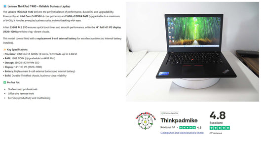 Lenovo ThinkPad T480 i5 8250U 16GB RAM 256GB SSD IPS SCREEN WIN11 (1226)