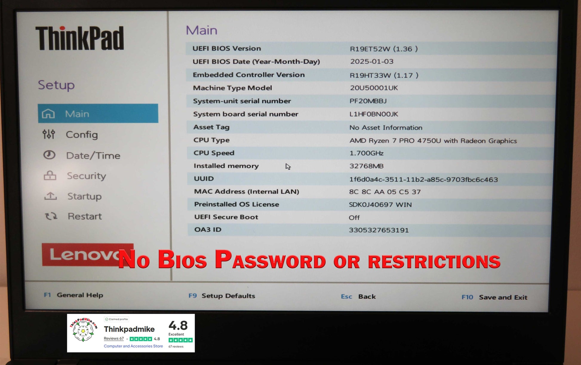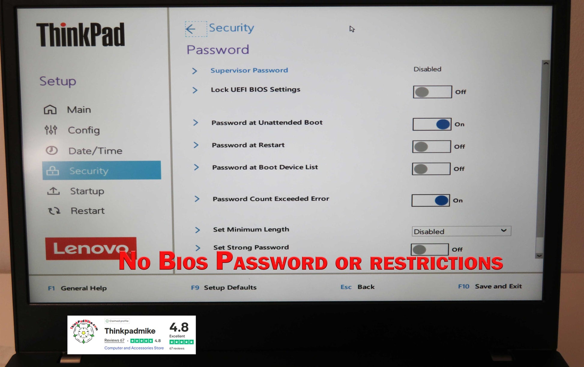 The BIOS is password free without any restrictions