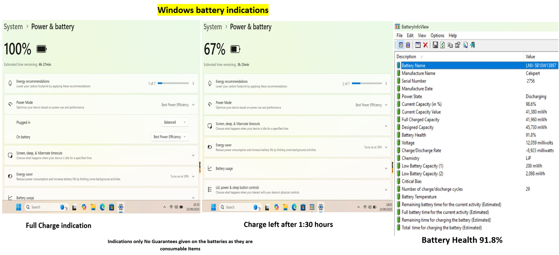 The battery also shows good health @ 91.8% and good capacity