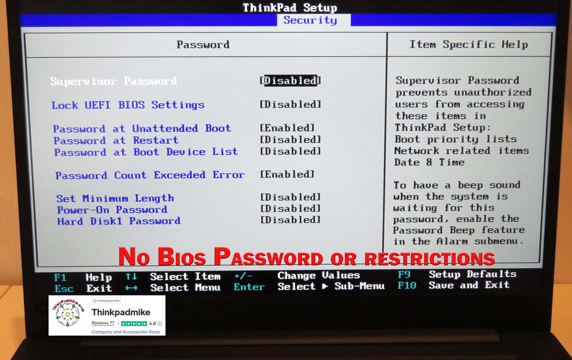 The BIOS is free from password restrictions, ensuring full control and customization.