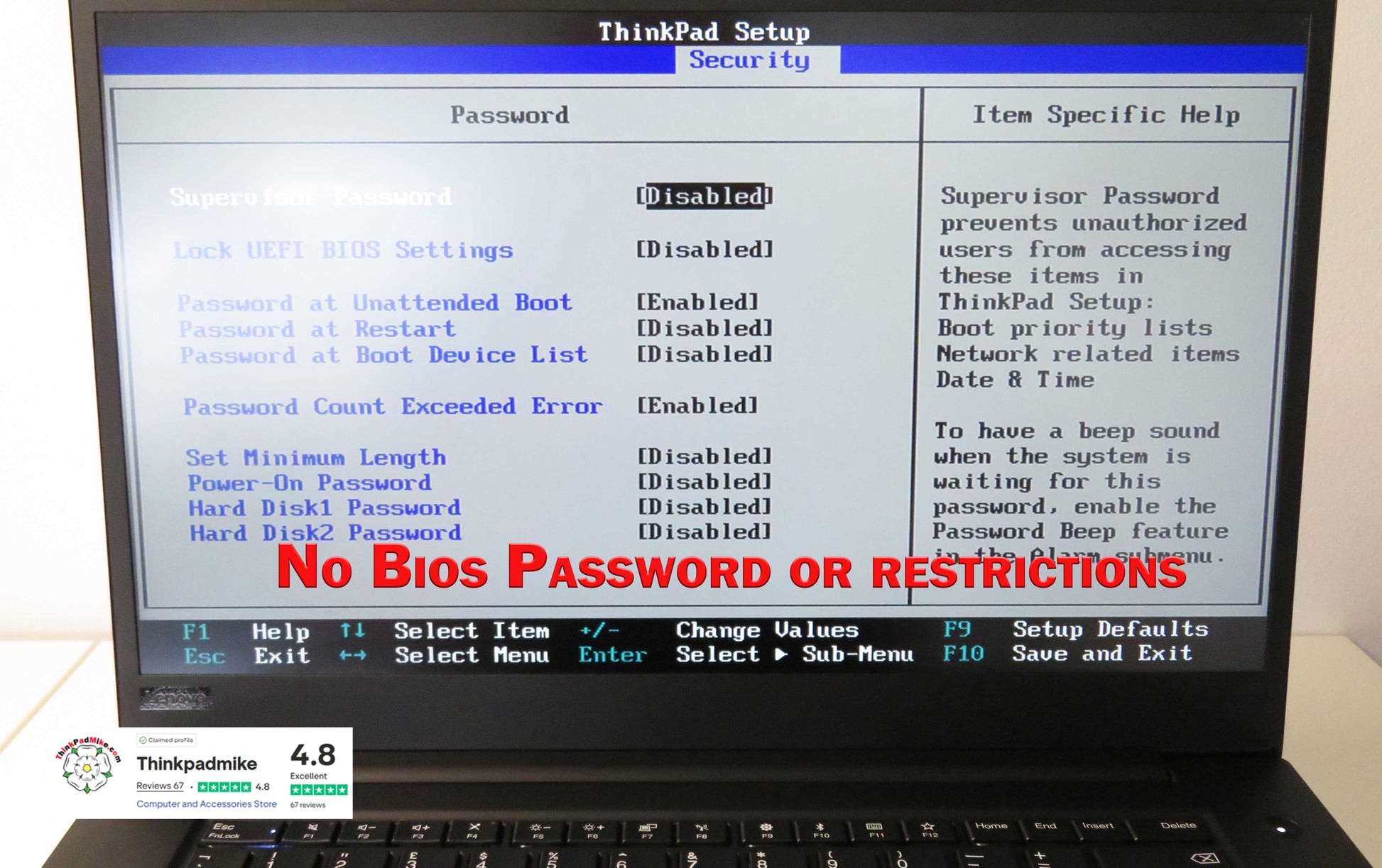 The BIOS is free from password restrictions, ensuring full control and customization.