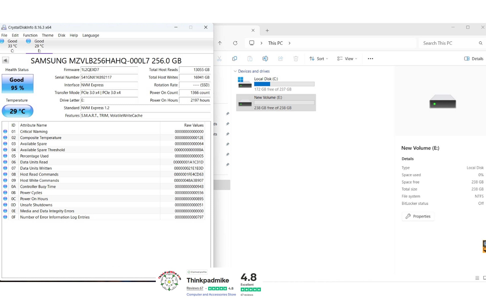 The drives have been checked using the Crystal Disk application and as you can see, they report Good health and a good temperature, . The laptop then has a full diagnostic scan to ensure there are no failings or issues, as you will see in the video it passed without any issues. It is then left to run for at least 24 hours without been allowed to sleep or hibernate to ensure no issues develop.
