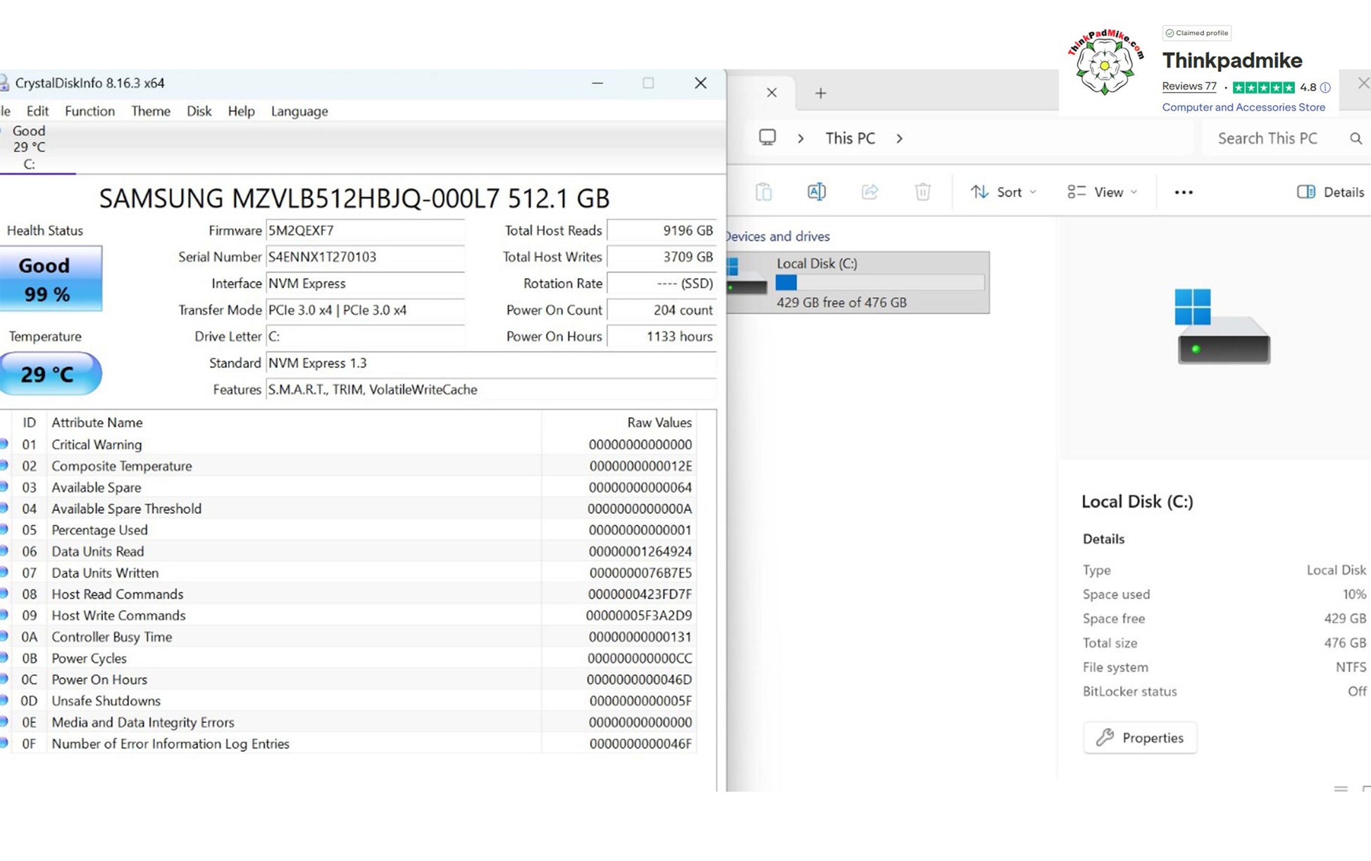 The SSD has been checked using the Crystal Disk application and as you can see in the product picture, it reports Good health and a good temperature. The laptop then has a full diagnostic scan to ensure there are no failings or issues, as you will see in the video it passed without any issues. It is then left to run for at least 24 hours without been allowed to sleep or hibernate to ensure no issues develop.