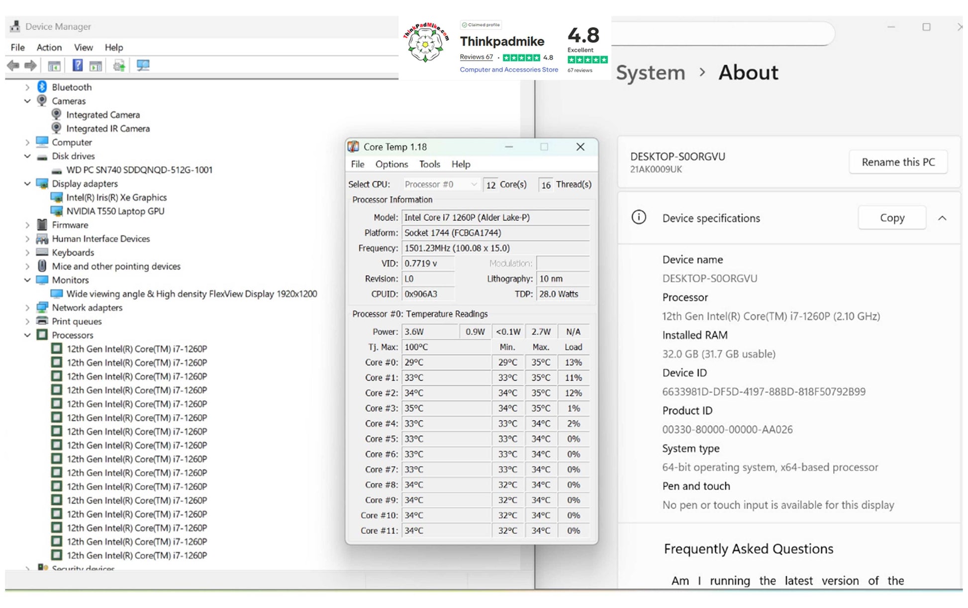 The SSD has been checked using the Crystal Disk application and as you can see in the product picture, it reports Good health and a good temperature. The laptop then has a full diagnostic scan to ensure there are no failings or issues, as you will see in the video it passed without any issues. It is then left to run for at least 24 hours without been allowed to sleep or hibernate to ensure no issues develop.
