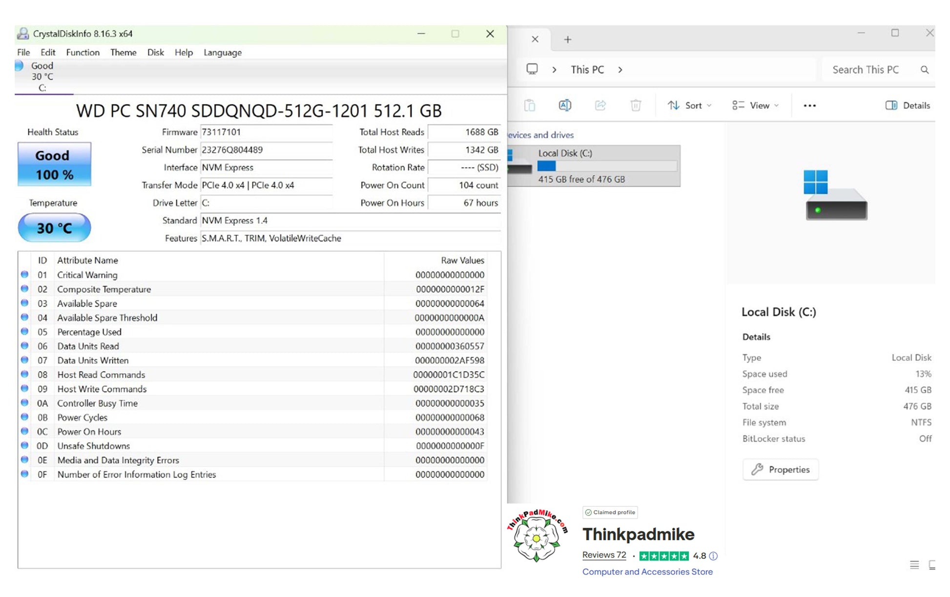 The SSD has been checked using the Crystal Disk application and as you can see in the product picture, it reports Good health and a good temperature. The laptop then has a full diagnostic scan to ensure there are no failings or issues, as you will see in the video it passed without any issues. It is then left to run for at least 24 hours without been allowed to sleep or hibernate to ensure no issues develop.