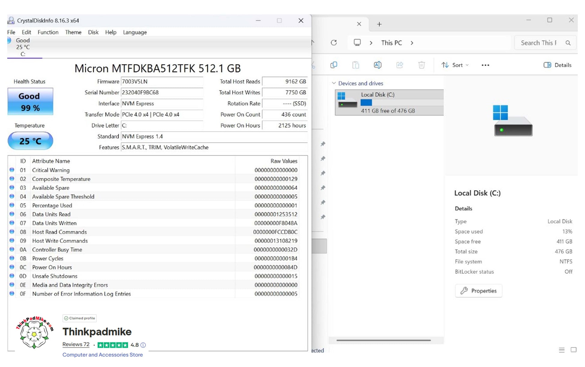 The SSD has been checked using the Crystal Disk application and as you can see in the product picture, it reports Good health and a good temperature. The laptop then has a full diagnostic scan to ensure there are no failings or issues, as you will see in the video it passed without any issues. It is then left to run for at least 24 hours without been allowed to sleep or hibernate to ensure no issues develop.