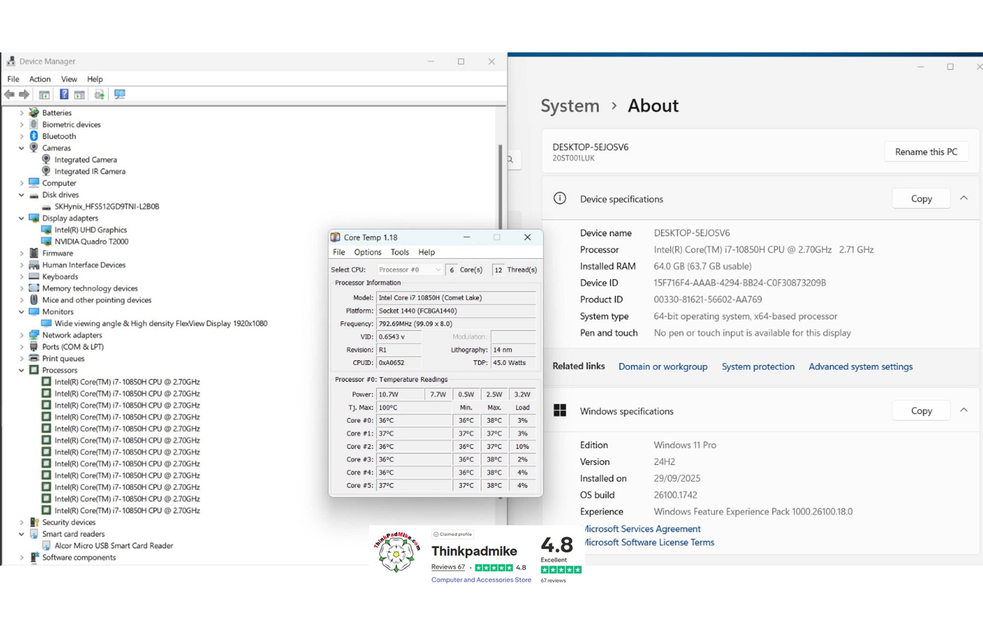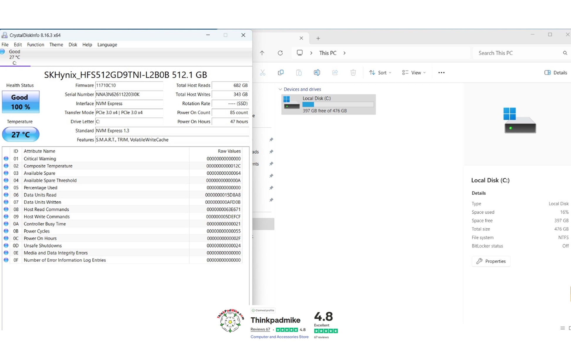 The SSD has been checked using the Crystal Disk application and as you can see in the product picture, it reports Good health and a good temperature. The laptop then has a full diagnostic scan to ensure there are no failings or issues, as you will see in the video it passed without any issues. It is then left to run for at least 24 hours without been allowed to sleep or hibernate to ensure no issues develop.