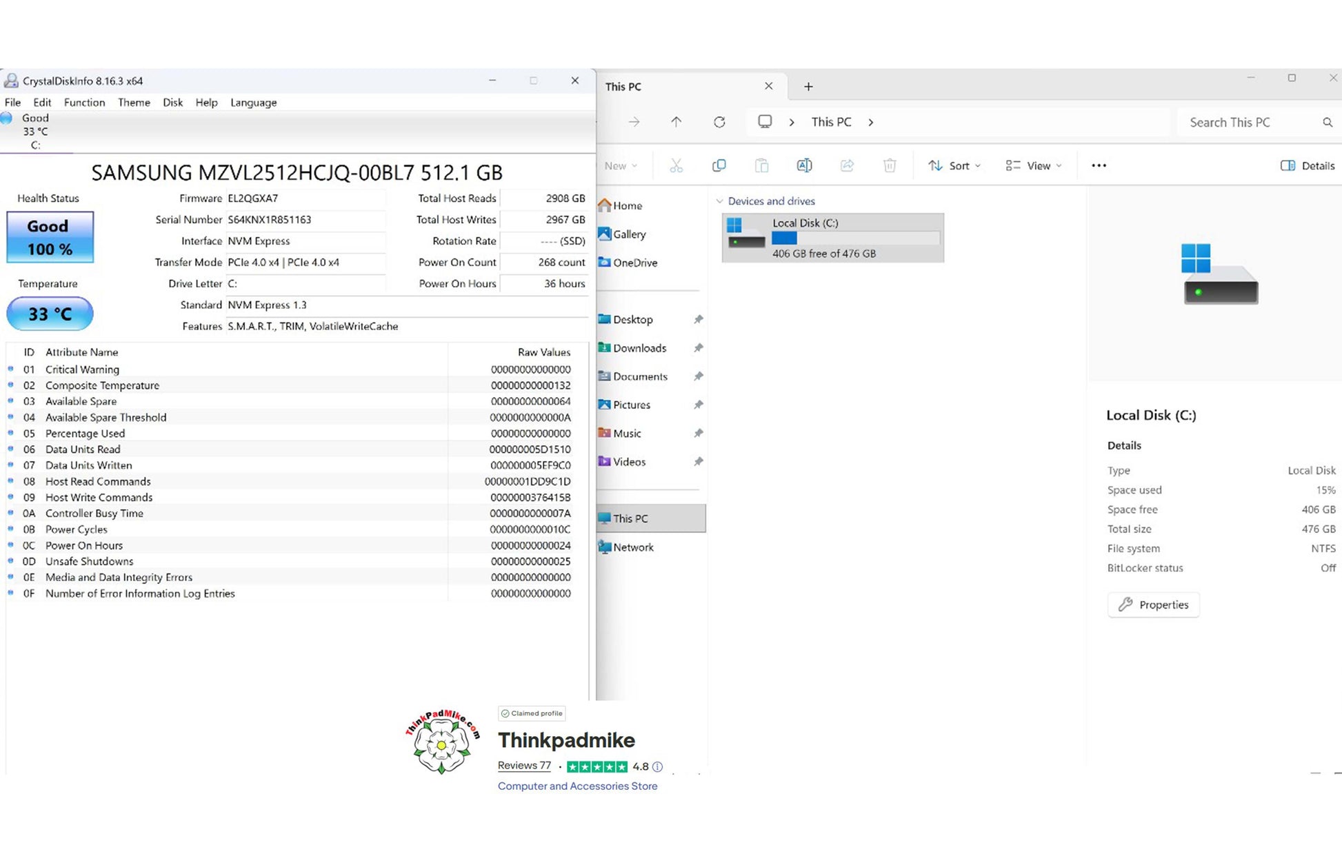 The SSD has been checked using the Crystal Disk application and as you can see in the product picture, it reports Good health and a good temperature with very low usage almost brand new. The laptop then has a full diagnostic scan to ensure there are no failings or issues, as you will see in the video it passed without any issues. It is then left to run for at least 24 hours without been allowed to sleep or hibernate to ensure no issues develop.