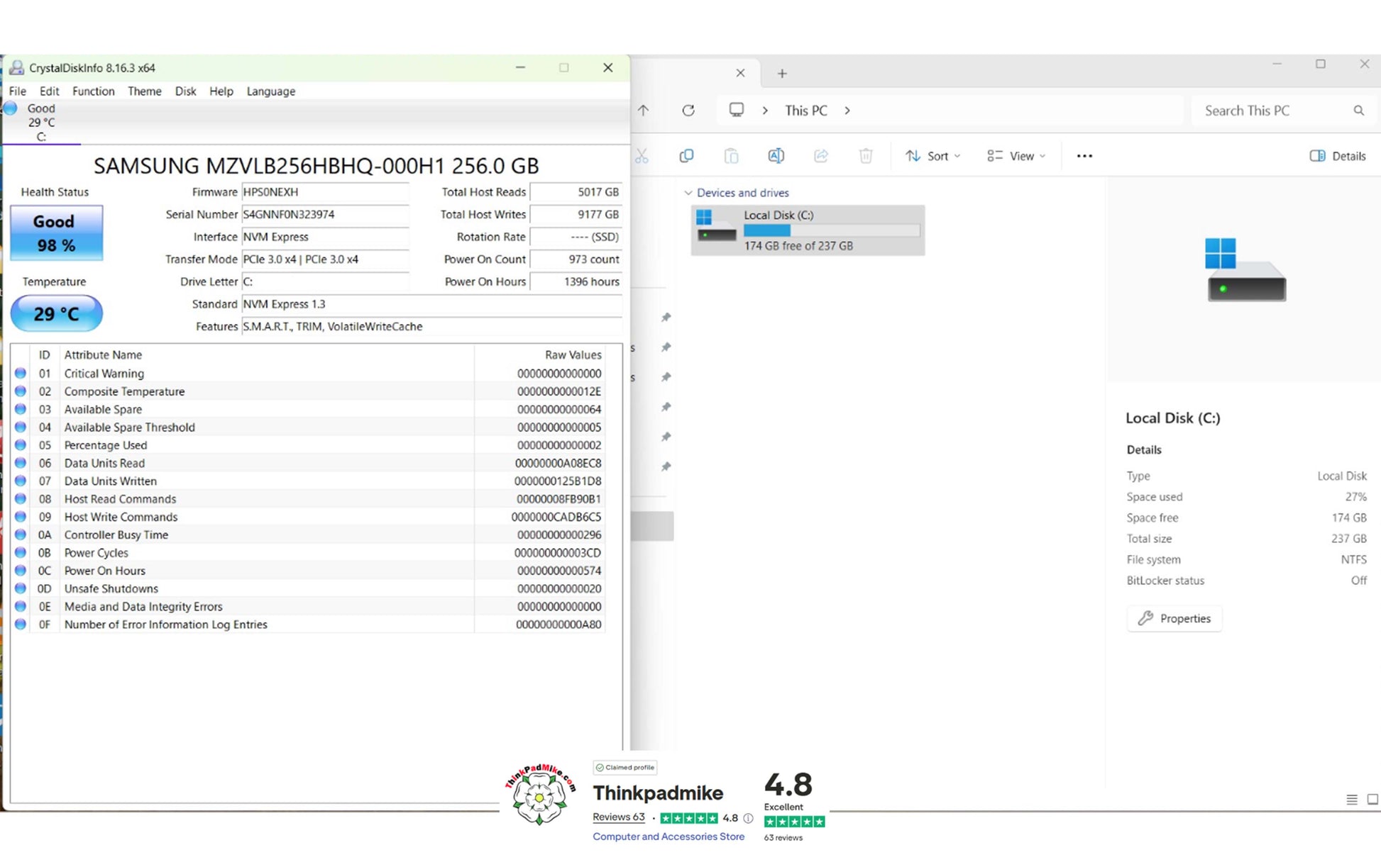 The drive has been checked using the Crystal Disk application and reports Good health and a good temperature. The laptop then has a full diagnostic scan to ensure there are no failings or issues, as you will see in the video it passed without any issues. It is then left to run for at least 24 hours (generally 48 hours) without been allowed to sleep or hibernate to ensure no issues develop.