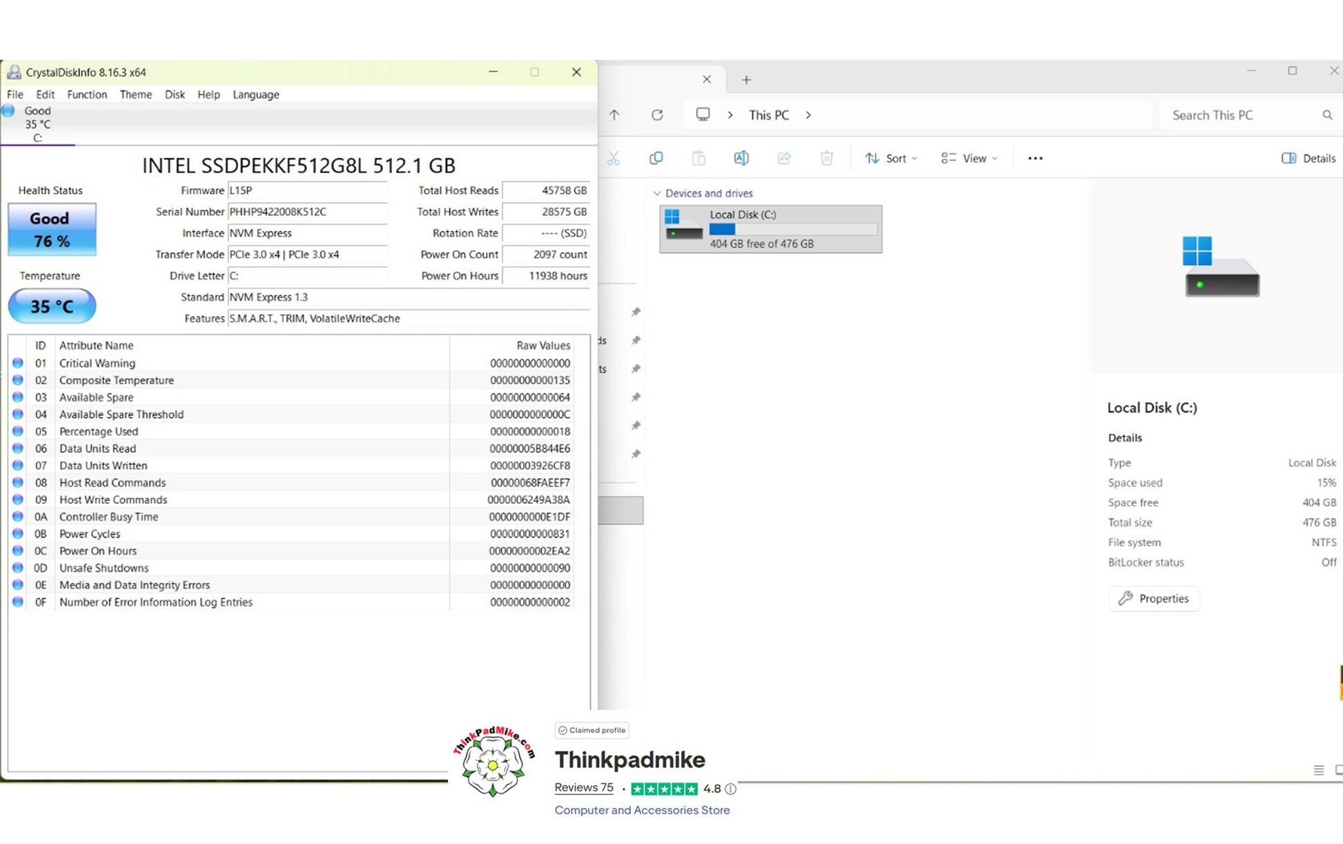 The drive has been checked using the Crystal Disk application and as you can see, it reports Good health and a good temperature. The laptop then has a full diagnostic scan to ensure there are no failings or issues, as you will see in the below video it passed without any issues. It is then left to run for at least 24 hours without been allowed to sleep or hibernate to ensure no issues develop.