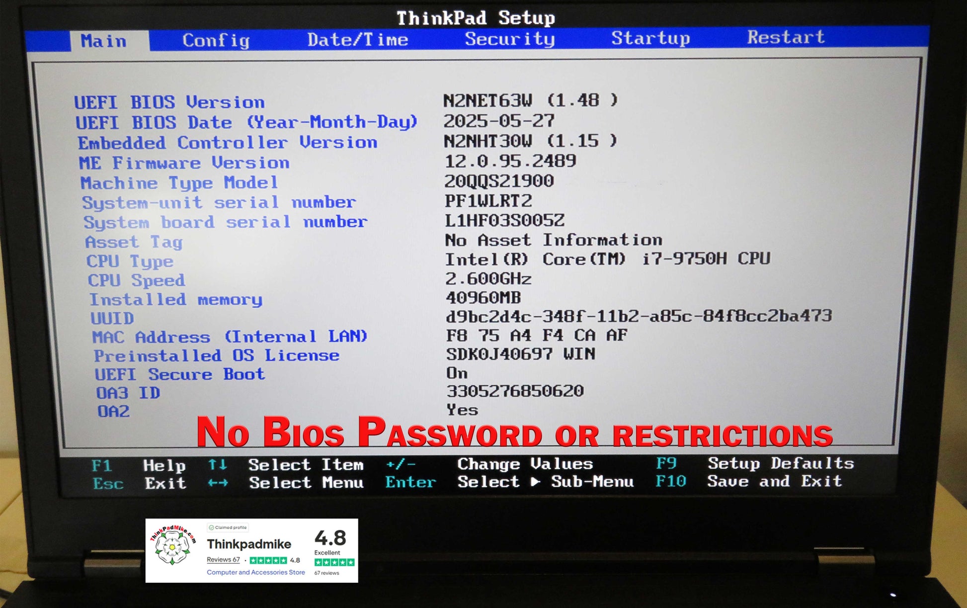 The BIOS is free from password restrictions, ensuring full control and customization.