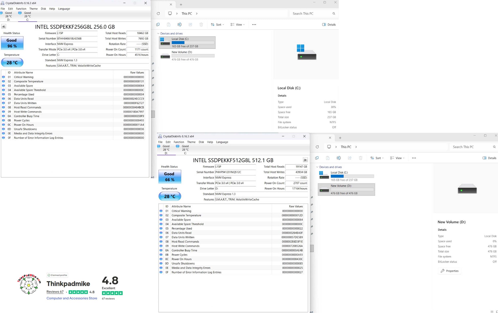 The drives have been checked using the Crystal Disk application and as you can see, they report Good health and a good temperature. The laptop then has a full diagnostic scan to ensure there are no failings or issues, as you will see in the below video it passed without any issues. It is then left to run for at least 24 hours without been allowed to sleep or hibernate to ensure no issues develop.