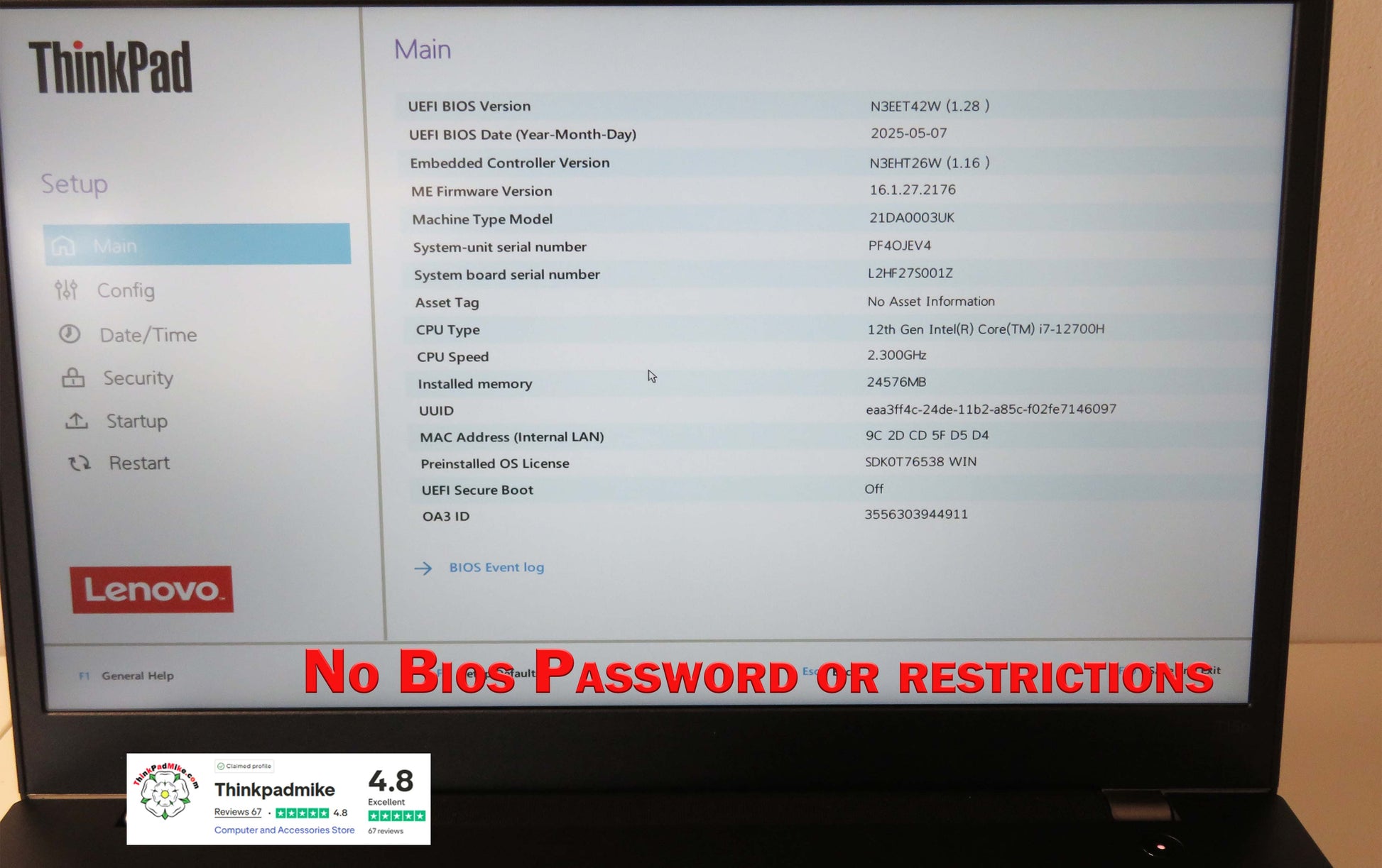 Unrestricted Access: The BIOS is free from password restrictions, ensuring you have full control over your machine.