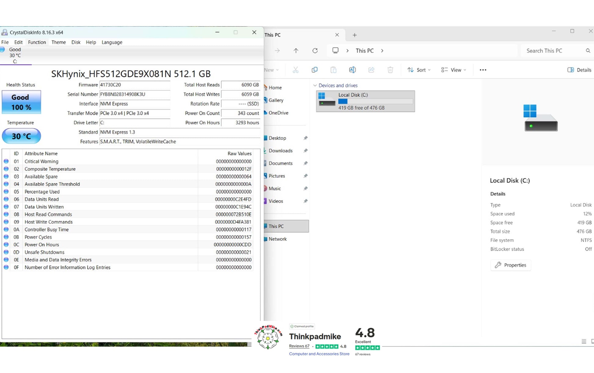 The SSD has been checked using the Crystal Disk application and as you can see in the product picture, it reports Good health and a good temperature. The laptop then has a full diagnostic scan to ensure there are no failings or issues, as you will see in the video it passed without any issues. It is then left to run for at least 24 hours without been allowed to sleep or hibernate to ensure no issues develop.