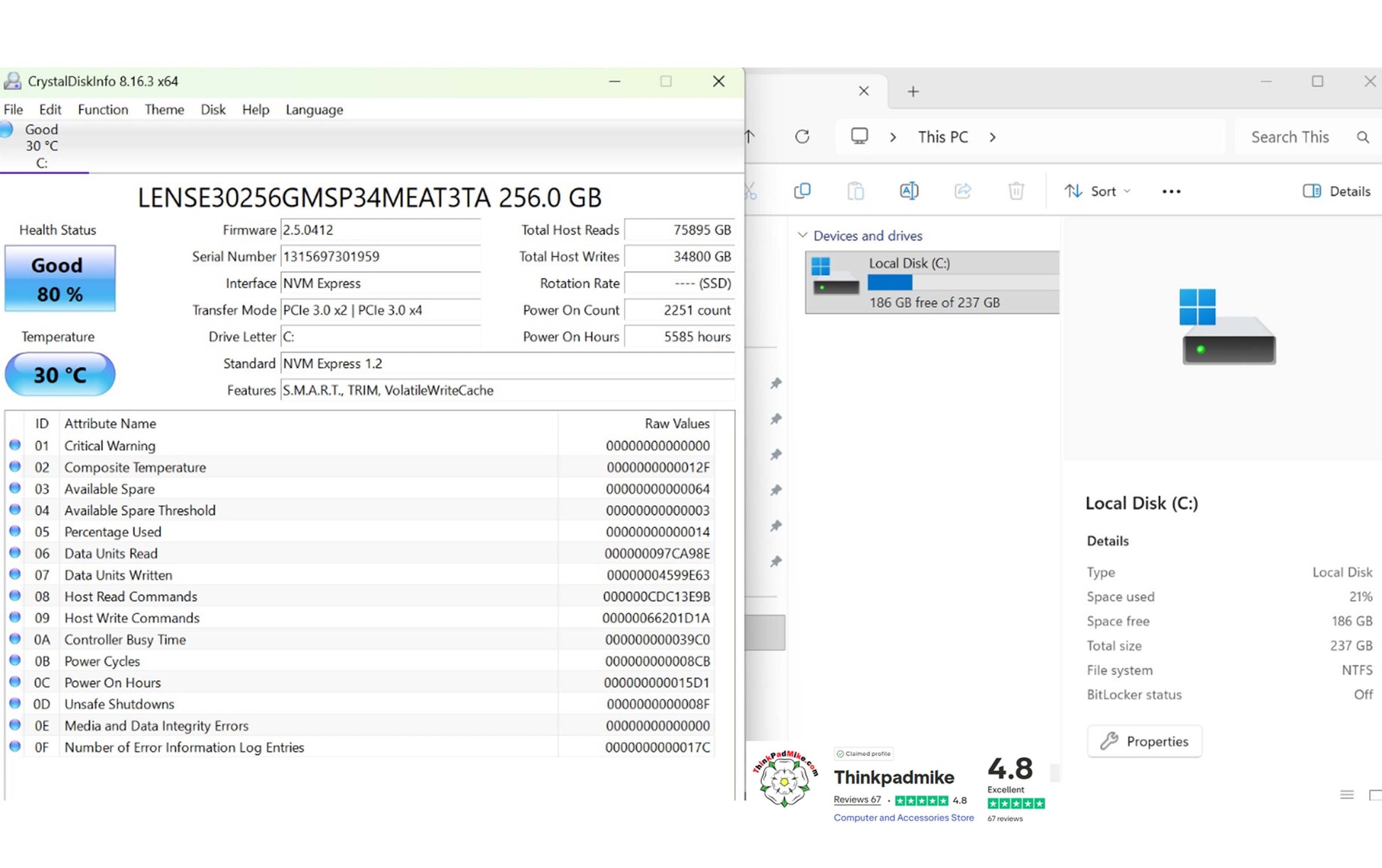 The SSD has been checked using the Crystal Disk Info application and it reports Good health and a good temperature. The laptop then has a full diagnostic scan to ensure there are no failings or issues, as you will see in the video it passed without any issues. It is then left to run for at least 24 hours (generally 48 hours) without been allowed to sleep or hibernate to ensure no issues develop.