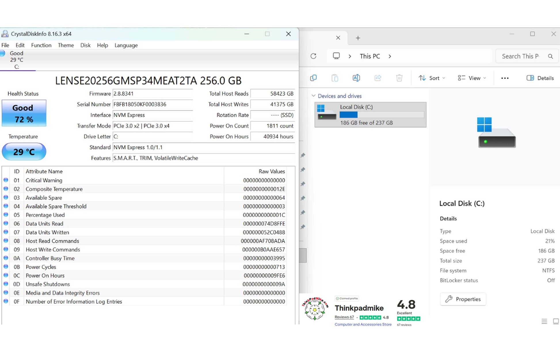 The SSD has been checked using the Crystal Disk Info application and it reports Good health and a good temperature. The laptop then has a full diagnostic scan to ensure there are no failings or issues, as you will see in the video it passed without any issues. It is then left to run for at least 24 hours (generally 48 hours) without been allowed to sleep or hibernate to ensure no issues develop.