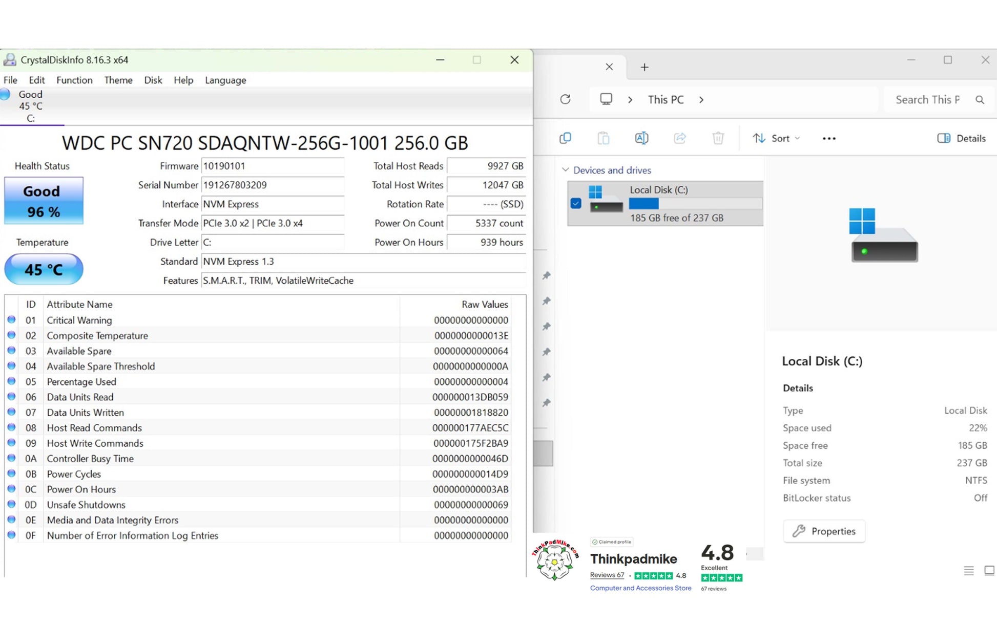 The SSD has been checked using the Crystal Disk Info application and it reports Good health and a good temperature. The laptop then has a full diagnostic scan to ensure there are no failings or issues, as you will see in the video it passed without any issues. It is then left to run for at least 24 hours (generally 48 hours) without been allowed to sleep or hibernate to ensure no issues develop.