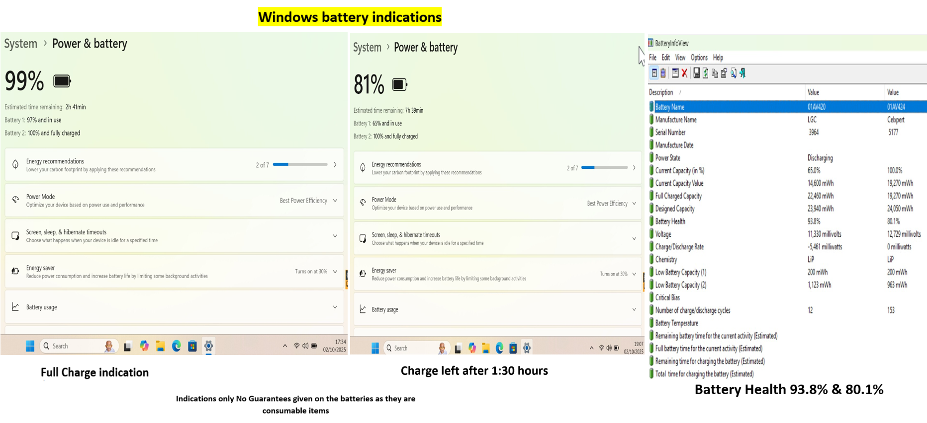 The batteries have also been scanned with the Battery Info View App which reports a battery health of 93.8 & 80.1% respectively.