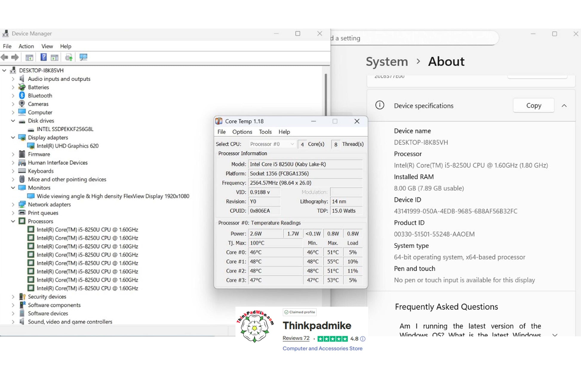 The internal fan has been removed cleaned, hoovered then new thermal paste applied to the heatsink, fan re-seated and sprayed with compressed air to ensure of a cool quiet running experience as you can see from the good processor temperature reading via the Core Temp App. The motherboard is checked for any signs of liquid spills and sprayed with compressed air to remove any dust or debris. The keyboard has been fully tested and cleaned with a sanitizer solution to remove any dirt and grime! All exteriors of the laptop are then cleaned with a sanitizer solution using a microfiber cloth. The screen is cleaned using a non-smear solution and a specialized LCD screen cleaning cloth. All ports are checked and tested as working.