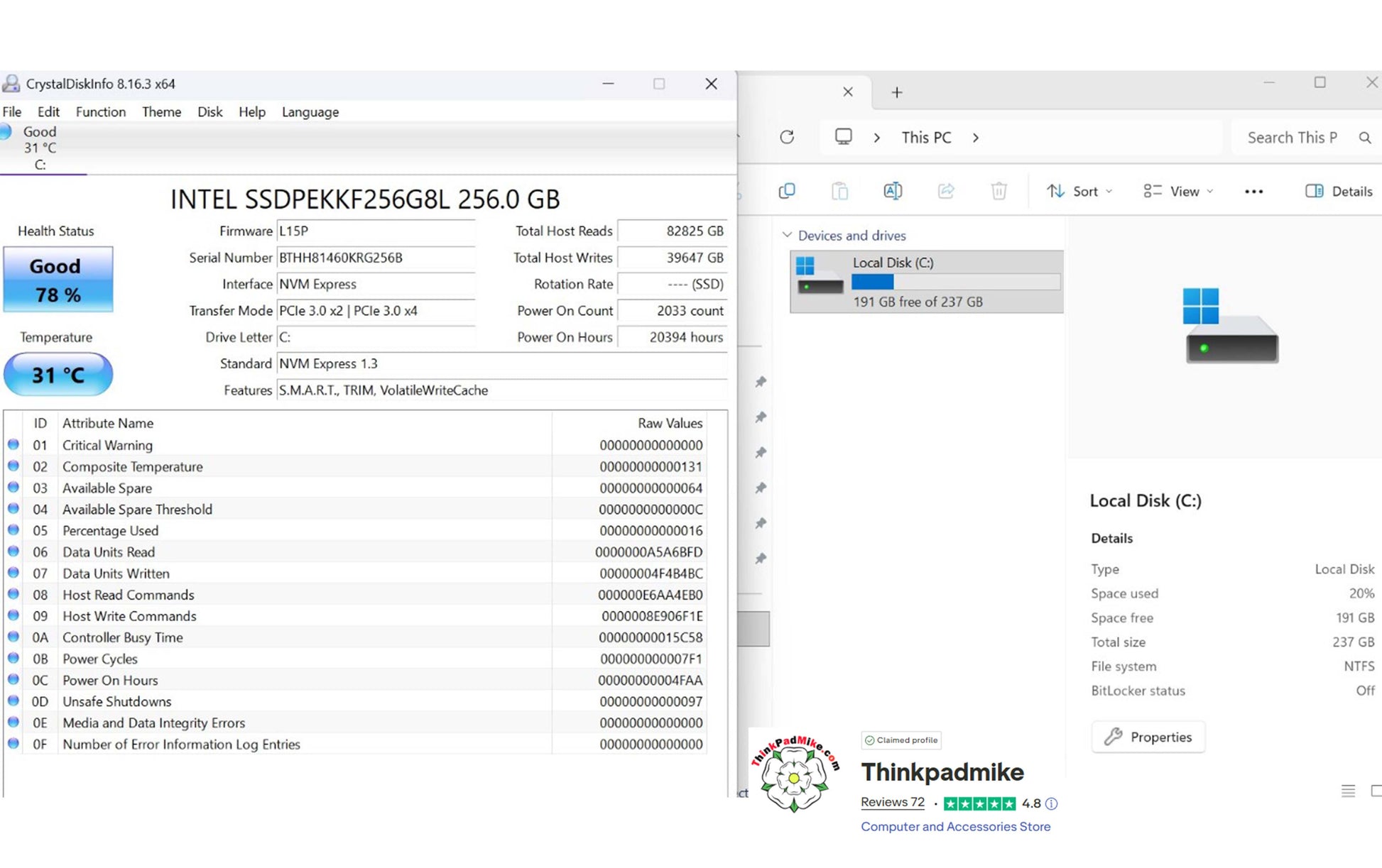 The SSD has been checked using the Crystal Disk Info application and it reports Good health and a good temperature. The laptop then has a full diagnostic scan to ensure there are no failings or issues, as you will see in the video it passed without any issues. It is then left to run for at least 24 hours (generally 48 hours) without been allowed to sleep or hibernate to ensure no issues develop.