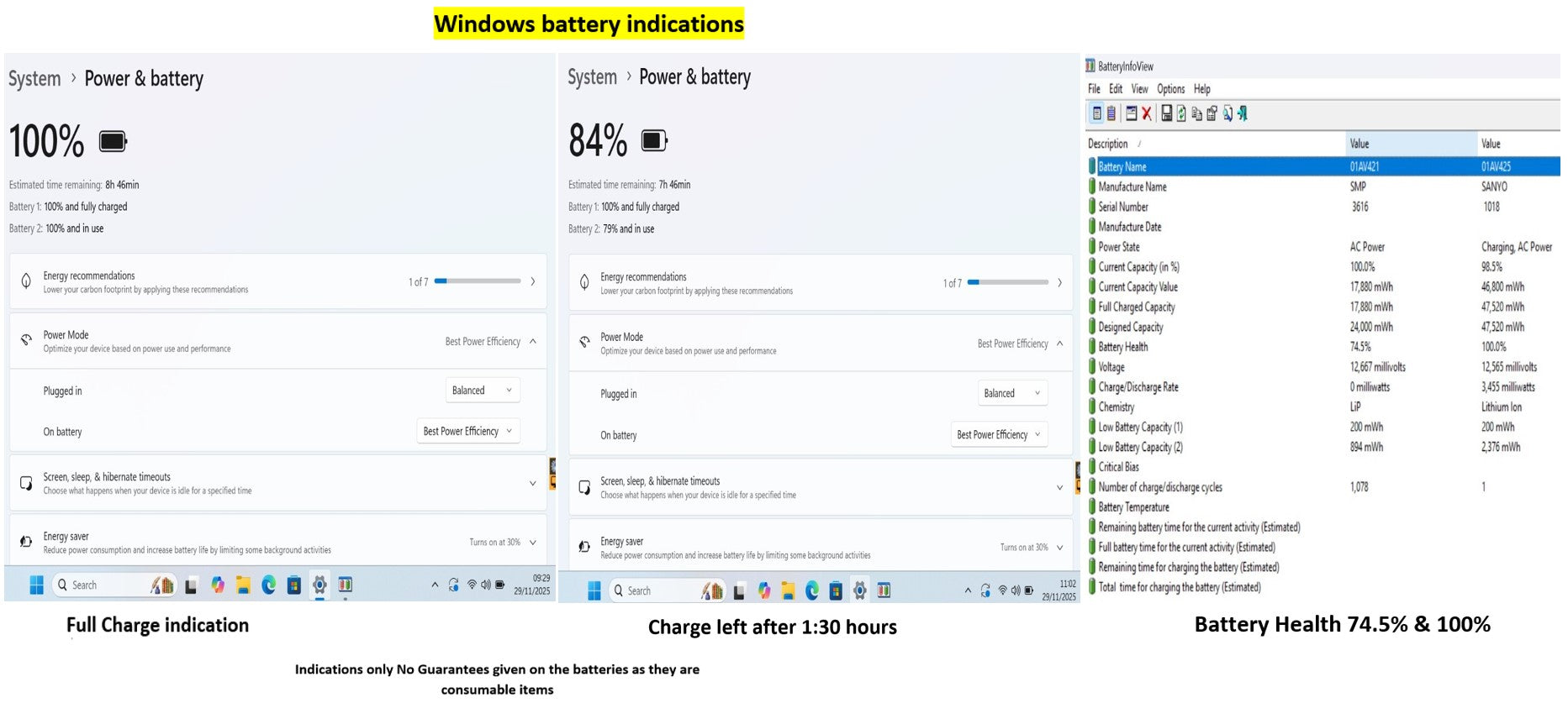 The batteries have also been scanned with the Battery Info View App which reports a battery health of 74.5 & 100% respectively.