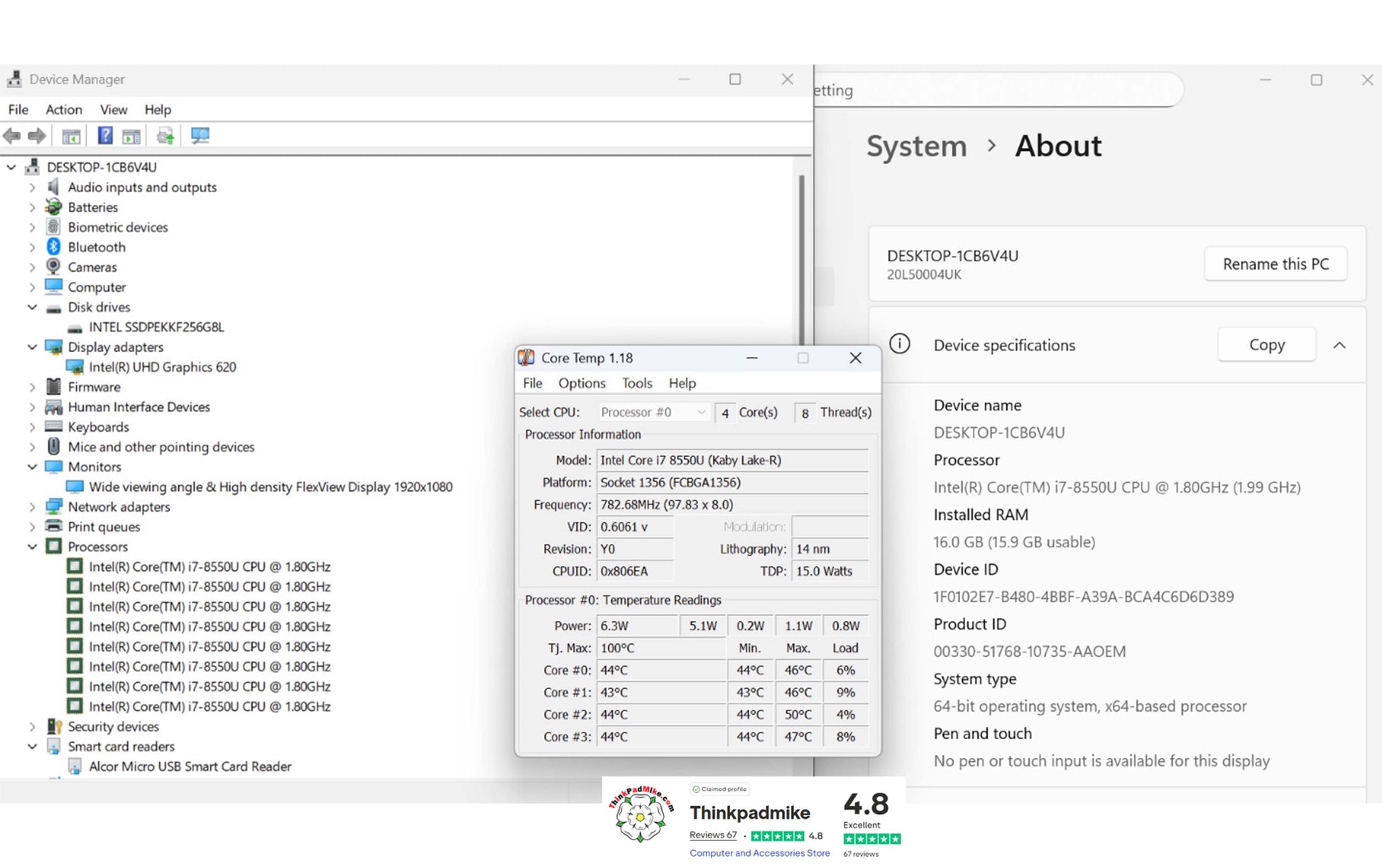 The internal fan has been removed cleaned, hoovered then new thermal paste applied to the heatsink, fan re-seated and sprayed with compressed air to ensure of a cool quiet running experience as you can see from the good processor temperature reading via the Core Temp App. The motherboard is checked for any signs of liquid spills and sprayed with compressed air to remove any dust or debris. The keyboard has been fully tested and cleaned with a sanitizer solution to remove any dirt and grime! All exteriors of the laptop are then cleaned with a sanitizer solution using a microfiber cloth. The screen is cleaned using a non-smear solution and a specialized LCD screen cleaning cloth. All ports are checked and tested as working.