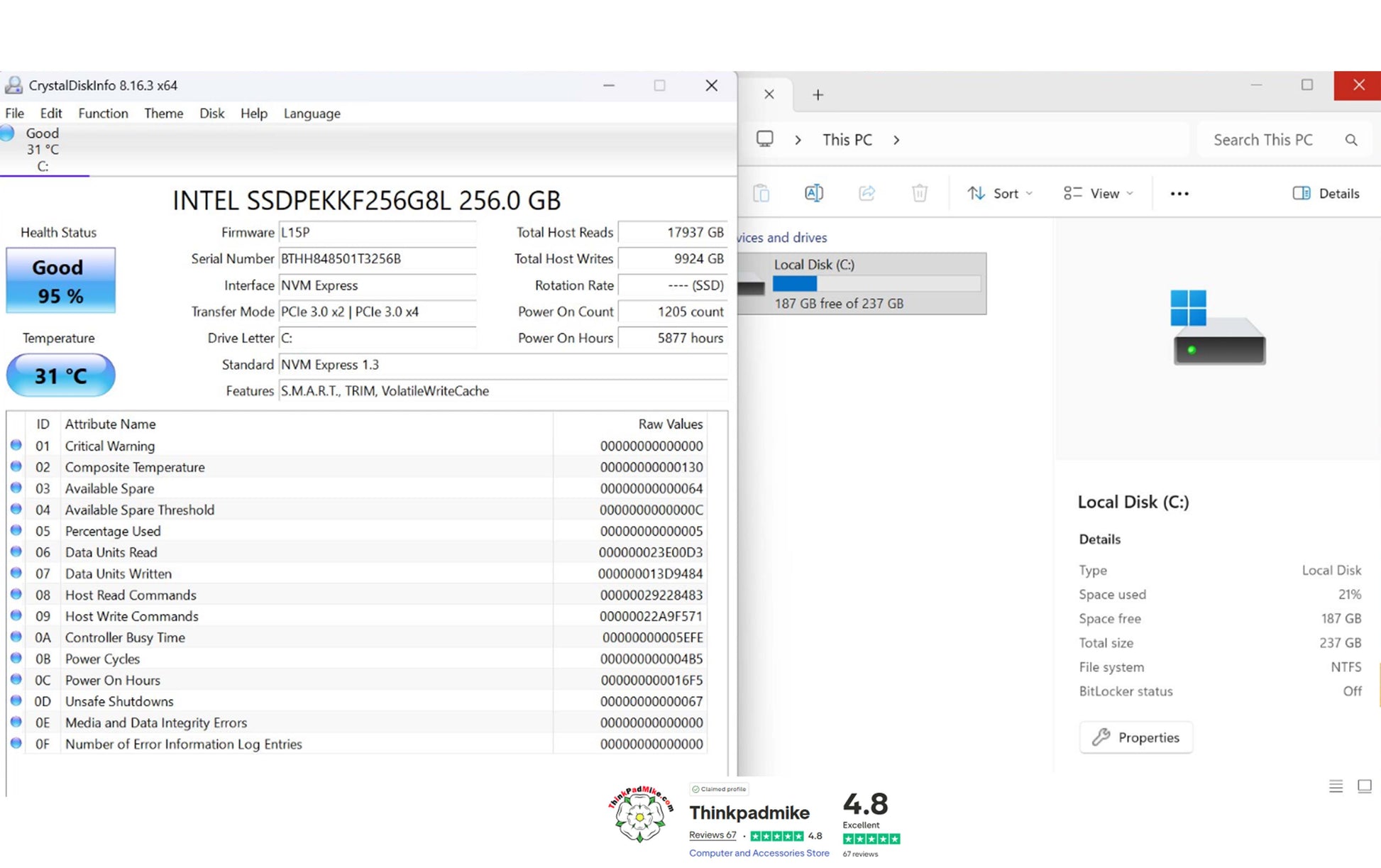 The SSD has been checked using the Crystal Disk Info application and it reports Good health and a good temperature as you can see. The laptop then has a full diagnostic scan to ensure there are no failings or issues, as you will see in the video it passed without any issues. It is then left to run for at least 24 hours (generally 48 hours) without been allowed to sleep or hibernate to ensure no issues develop.