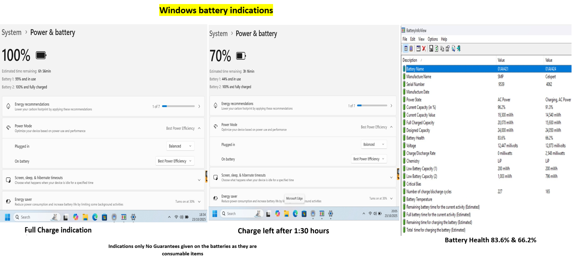 The batteries have also been scanned with the Battery Info View App which reports a battery health of 83.6% & 66.2% respectively.