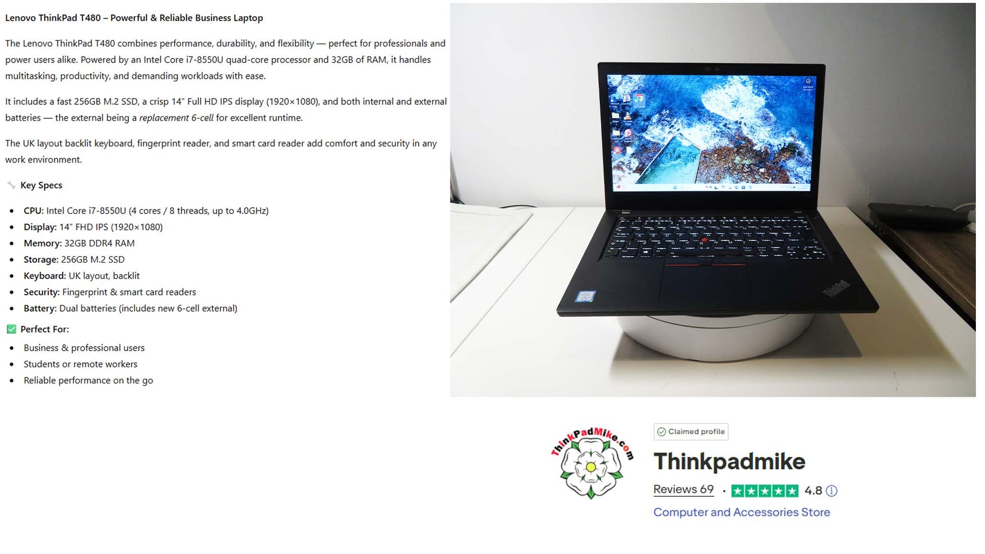 Lenovo ThinkPad T480 – Powerful & Reliable Business Laptop