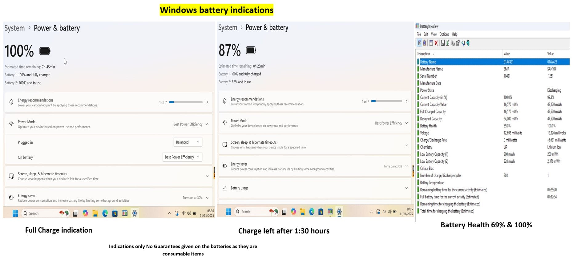 The batteries have also been scanned with the Battery Info View App which reports a battery health of 69% & 100% respectively.