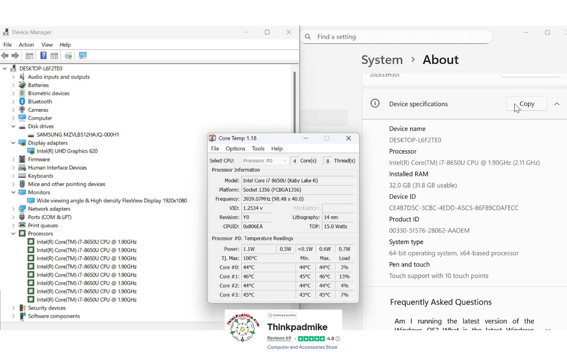 The internal fan has been removed cleaned, hoovered then new thermal paste applied to the heatsink, fan re-seated and sprayed with compressed air to ensure of a cool quiet running experience as you can see from the good processor temperature reading via the Core Temp App. The motherboard is checked for any signs of liquid spills and sprayed with compressed air to remove any dust or debris. The keyboard has been fully tested and cleaned with a sanitizer solution to remove any dirt and grime! All exteriors of the laptop are then cleaned with a sanitizer solution using a microfiber cloth. The screen is cleaned using a non-smear solution and a specialized LCD screen cleaning cloth. All ports are checked and tested as working.