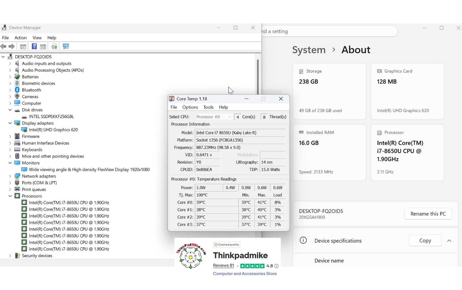 The internal fan has been removed, cleaned and hoovered and new thermal paste applied to the heat sink then fan reseated to ensure of a cool quiet running experience as you can see from the good processor temperature reading via the Core Temp App. The motherboard is checked for any signs of liquid spills and sprayed with compressed air to remove any dust or debris. The keyboard has been fully tested and cleaned with a sanitizer solution using a toothbrush to remove any dirt and grime! All exteriors of the laptop are then cleaned with a sanitizer solution using a microfiber cloth. The screen is cleaned using a non-smear solution and a specialized LCD screen cleaning cloth. All ports are checked and tested as working.