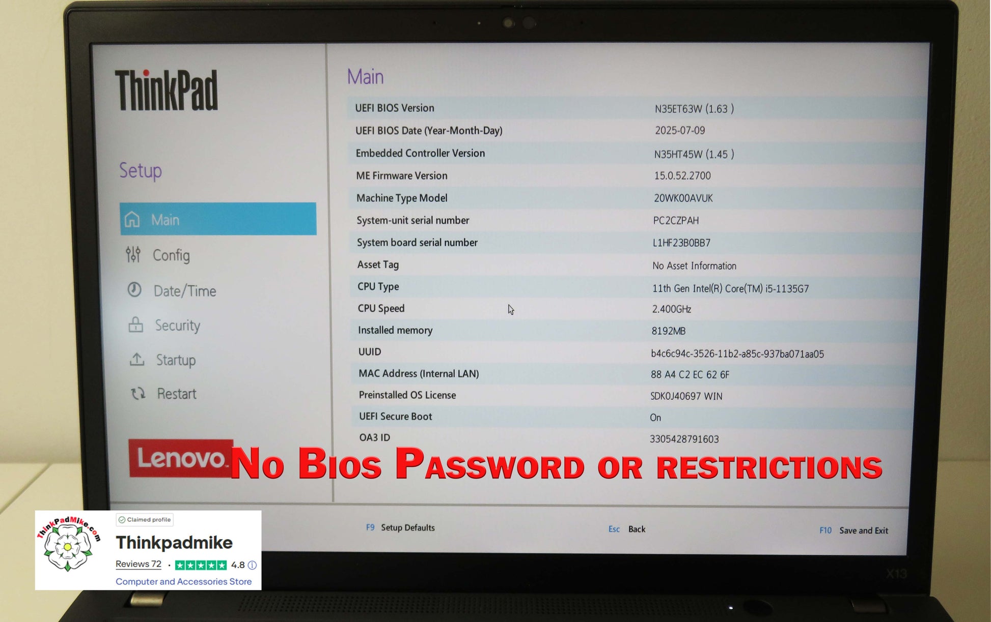 Lenovo ThinkPad x13 Gen 2 i5 1135G7 8GB RAM 256GB SSD WUXGA IPS SCREEN B\LKB (1243)
