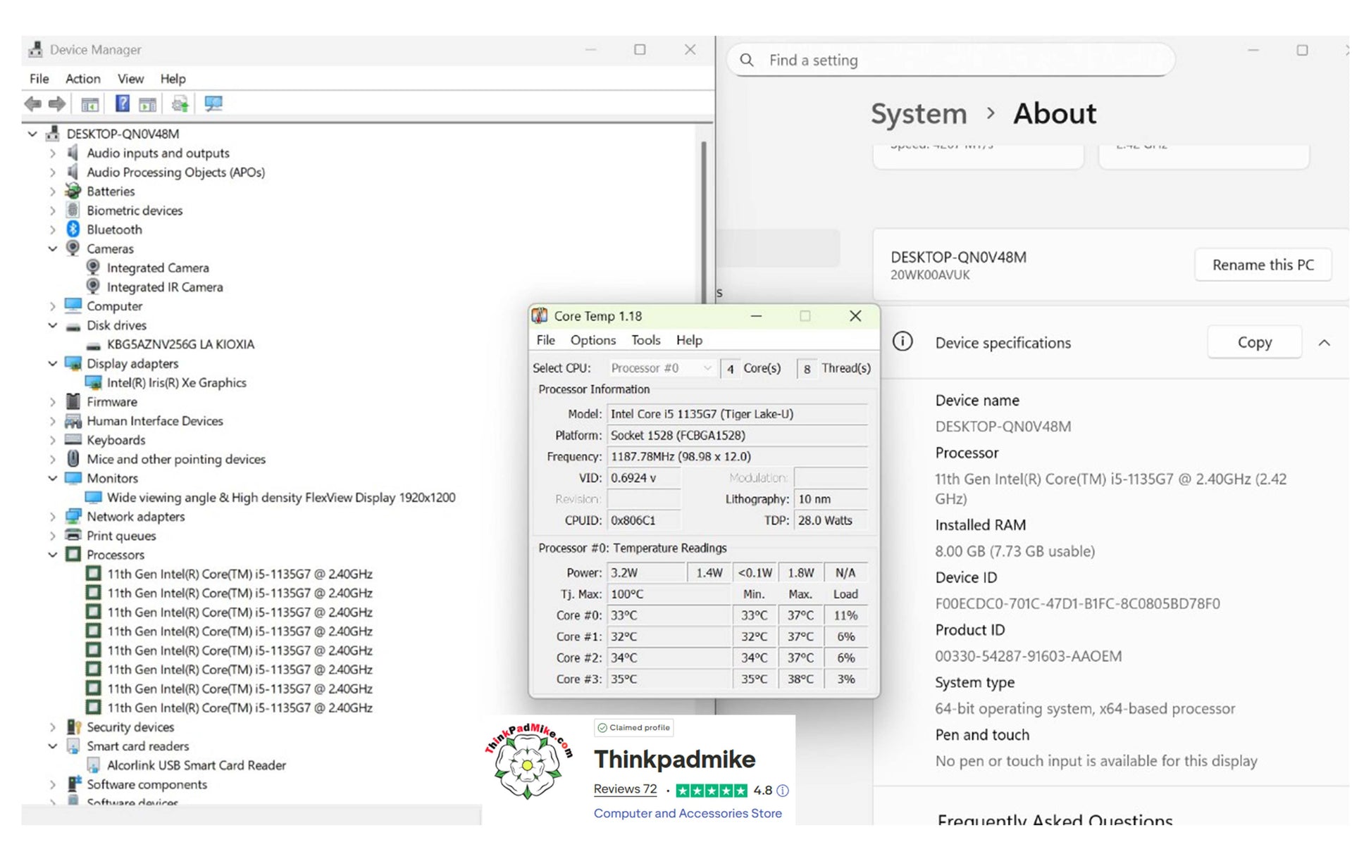 The internal fan has been cleaned, hoovered then sprayed with compressed air to ensure of a cool quiet running experience as you can see from the good processor temperature reading via the Core Temp App. The motherboard is checked for any signs of liquid spills and sprayed with compressed air to remove any dust or debris. The keyboard has been fully tested and cleaned with a sanitizer solution to remove any dirt and grime! All exteriors of the laptop are then cleaned with a sanitizer solution using a microfiber cloth. The screen is cleaned using a non-smear solution and a specialized LCD screen cleaning cloth. All ports are checked and tested as working.